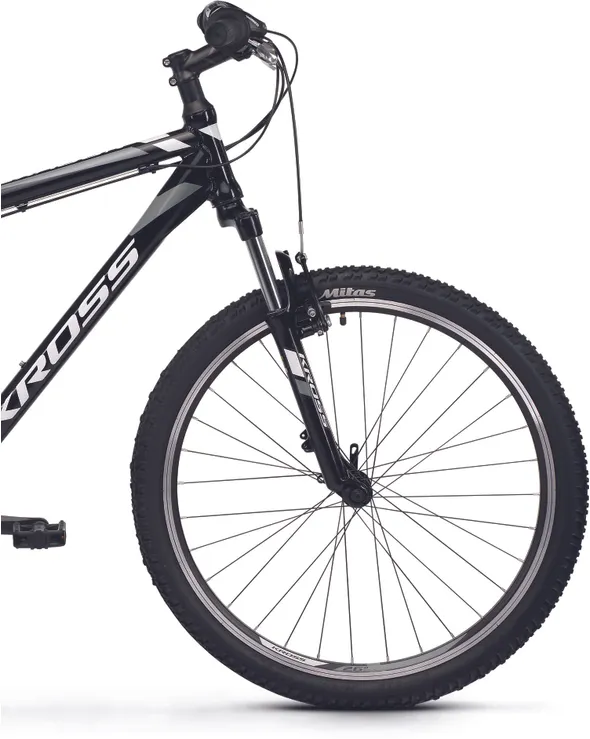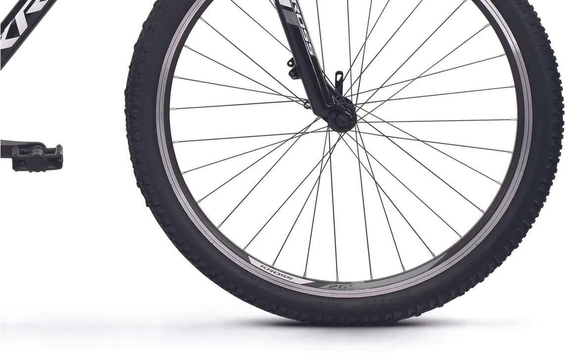 En dämpade framgaffel från Kross med 80 mm slaglängd kombineras med stabila 26"-hjul som ser till att du tar dig fram med hög bekvämlighet och bra grepp, vilket bidrar till en roligare upplevelse i sadeln när underlaget är lite sämre. Inbromsningarna sker med hjälp av traditionella v-bromsar, de är både lätt att underhålla och ser till att du slipper släpa på onödigt vikt.