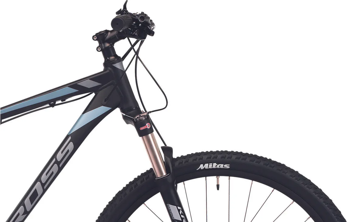En fin dämpade luftgaffel från Suntour (XCR 32 RLR Air) med remote lockout (gaffeln kan låsas via reglage på styret) och 100 mm slaglängd kombineras med robusta 29-tummare som ser till att du tar dig fram med hög bekvämlighet och bra grepp, vilket självklart bidrar till en roligare upplevelse i sadeln även när underlaget är riktigt stökigt. Eftersom cykeln gillar äventyr och fart så är det utrustad med bromsar som matchar fartresurserna, de kraftfulla hydrauliska skivbromsarna är inte bara effektiva utan levererar också pålitlig bromsförmåga oavsett väder, vind och underlag.