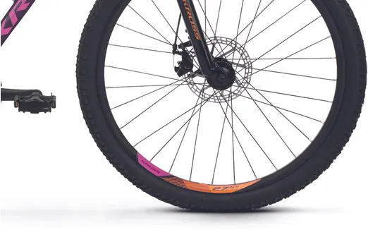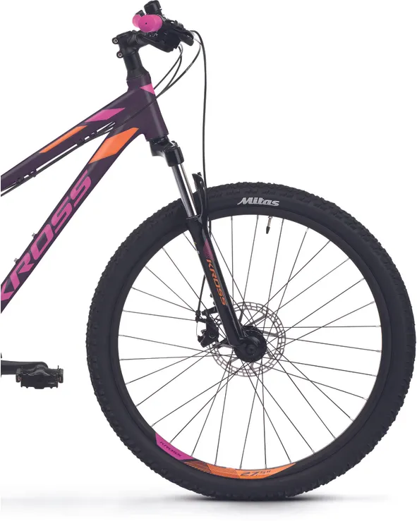En dämpade framgaffel från Kross med 80 mm slaglängd kombineras med stabila 27,5"-hjul som ser till att du tar dig fram med hög bekvämlighet och bra grepp, vilket självklart bidrar till en roligare upplevelse i sadeln även när underlaget är lite sämre. Eftersom cykeln gillar äventyr och fart så är det utrustad med bromsar som matchar fartresurserna, de mekaniska skivbromsarna är inte bara effektiva utan levererar också pålitlig bromsförmåga oavsett väder, vind och underlag.