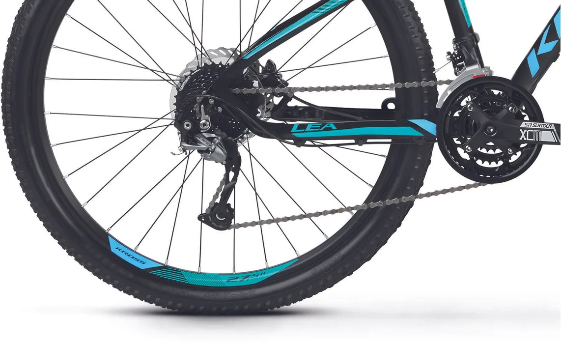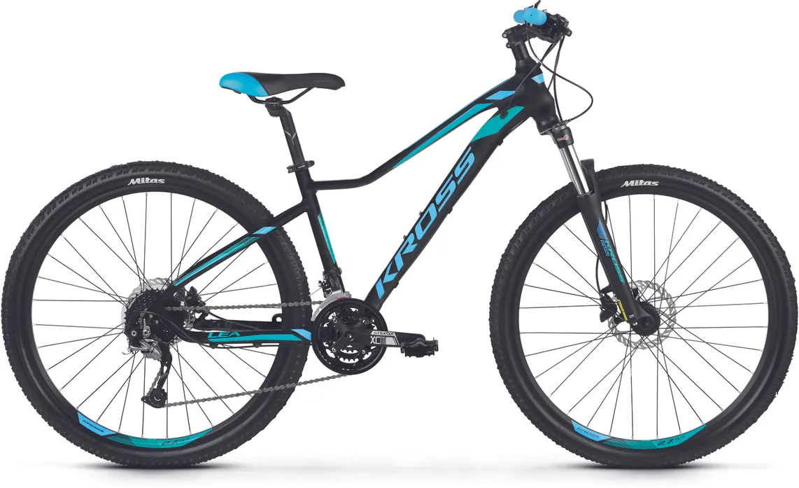 Ställ en fråga om Kross Lea 7.0 27.5" mattsvart/blå/turkosMångsidiga storsäljaren Kross Lea 7.0 27,5" är en mountainbike med massor av cykelglädje som är skapad för lättare turer i skogen, på stigarna och grusvägarna. Visst, den har lite enklare utrustning än andra serier men den har fullt funktionella komponenter och den passar perfekt dig som inte kör längre sträckor och som kanske inte planerar att köra stenhårt i skogen.