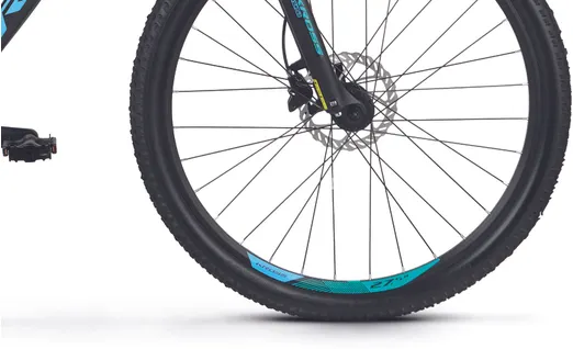 En dämpade framgaffel från Suntour (XCM RL) med remote lockout (gaffeln kan låsas via reglage på styret) och 100 mm slaglängd kombineras med robusta 27,5-tummare som ser till att du tar dig fram med hög bekvämlighet och bra grepp, vilket självklart bidrar till en roligare upplevelse i sadeln även när underlaget är riktigt stökigt. Eftersom cykeln gillar äventyr och fart så är det utrustad med bromsar som matchar fartresurserna, de kraftfulla hydrauliska skivbromsarna är inte bara effektiva utan levererar också pålitlig bromsförmåga oavsett väder, vind och underlag.