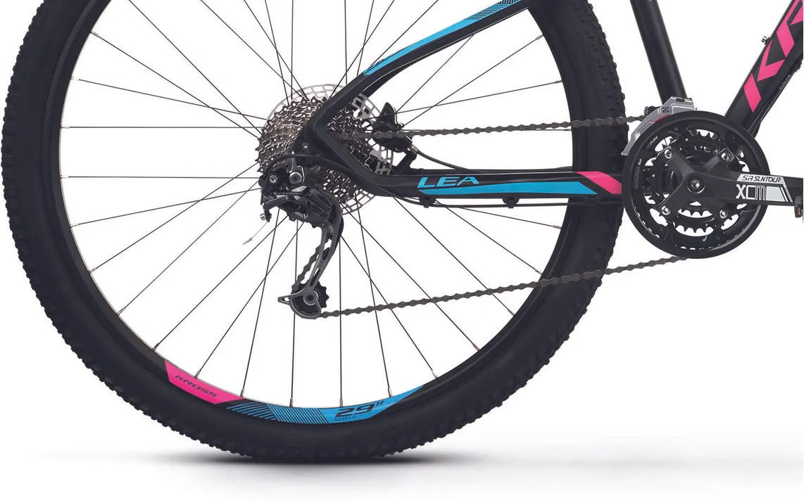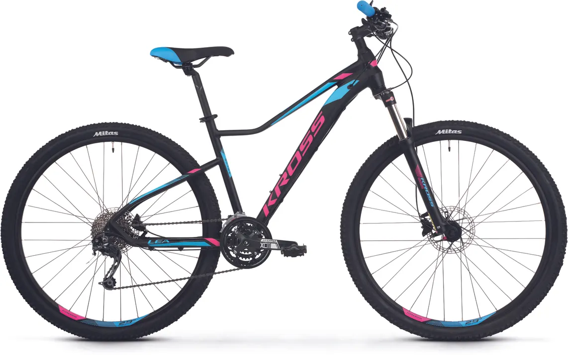 Ställ en fråga om Kross Lea 8.0 29" mattsvart/rosa/blåMångsidiga storsäljaren Kross Lea 8.0 29" är en mountainbike med massor av cykelglädje som är skapad för turer i skogen, på stigarna och grusvägarna. Visst, den har lite enklare utrustning än många andra serier men den har fullt funktionella kvalitetskomponenter och den passar perfekt dig som kanske inte planerar att köra stenhårt i skogen.