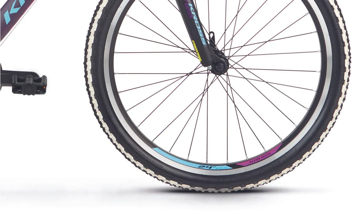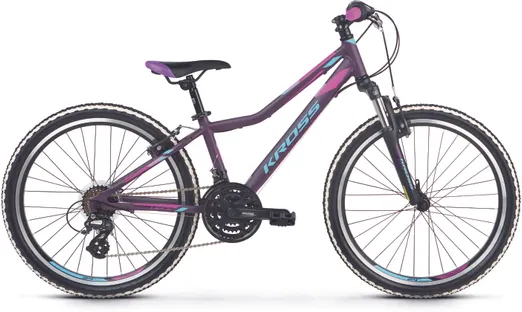 Ställ en fråga om Kross Lea JR 2.0 24" 8-växlad matt violett/blåPopulära Kross Lea JR 2.0 24" är en prisvärd juniormodell med massor av cykelglädje som är skapad för lättare turer i skogen, på stigarna och på grusvägarna. Visst, den har enklare utrustning än sina större syskon i serien men den har funktionella komponenter och den passar dig som kör kortare sträckor och som kanske inte alls planerar att köra hårt.