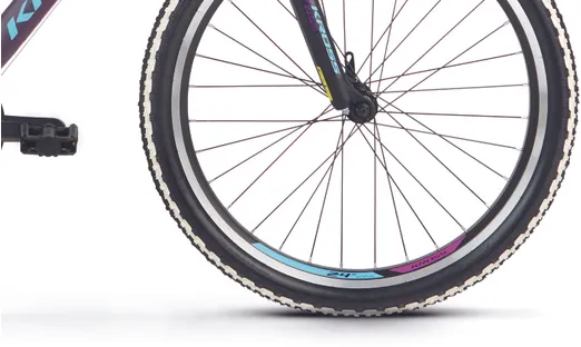 En dämpade framgaffel från Suntour (XCT JR) med 50 mm slaglängd kombineras med stabila 24"-hjul som ser till att du tar dig fram med hög bekvämlighet och bra grepp, vilket bidrar till en roligare upplevelse i sadeln när underlaget är lite sämre. Inbromsningarna sker med hjälp av traditionella v-bromsar, de är både lätt att underhålla och ser till att du slipper släpa på onödigt vikt.