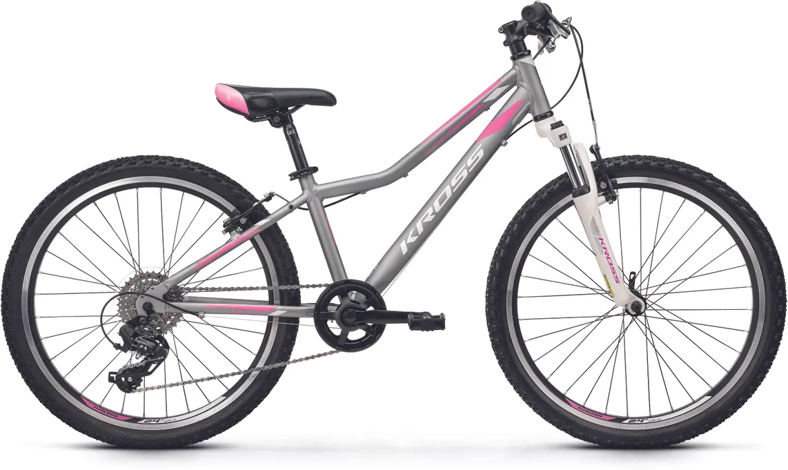 Ställ en fråga om Kross Lea JR 2.0 24" 8-växlad mattsilver/rosa/vitPopulära Kross Lea JR 2.0 24" är en prisvärd juniormodell med massor av cykelglädje som är skapad för lättare turer i skogen, på stigarna och på grusvägarna. Visst, den har enklare utrustning än sina större syskon i serien men den har funktionella komponenter och den passar dig som kör kortare sträckor och som kanske inte alls planerar att köra hårt.