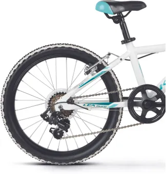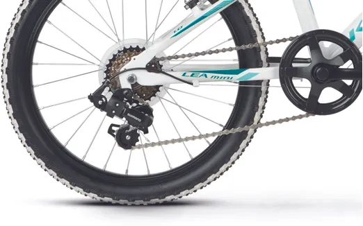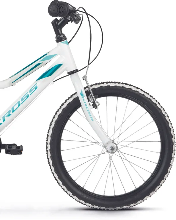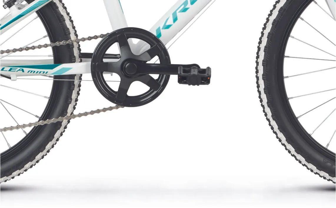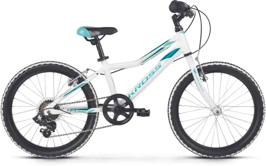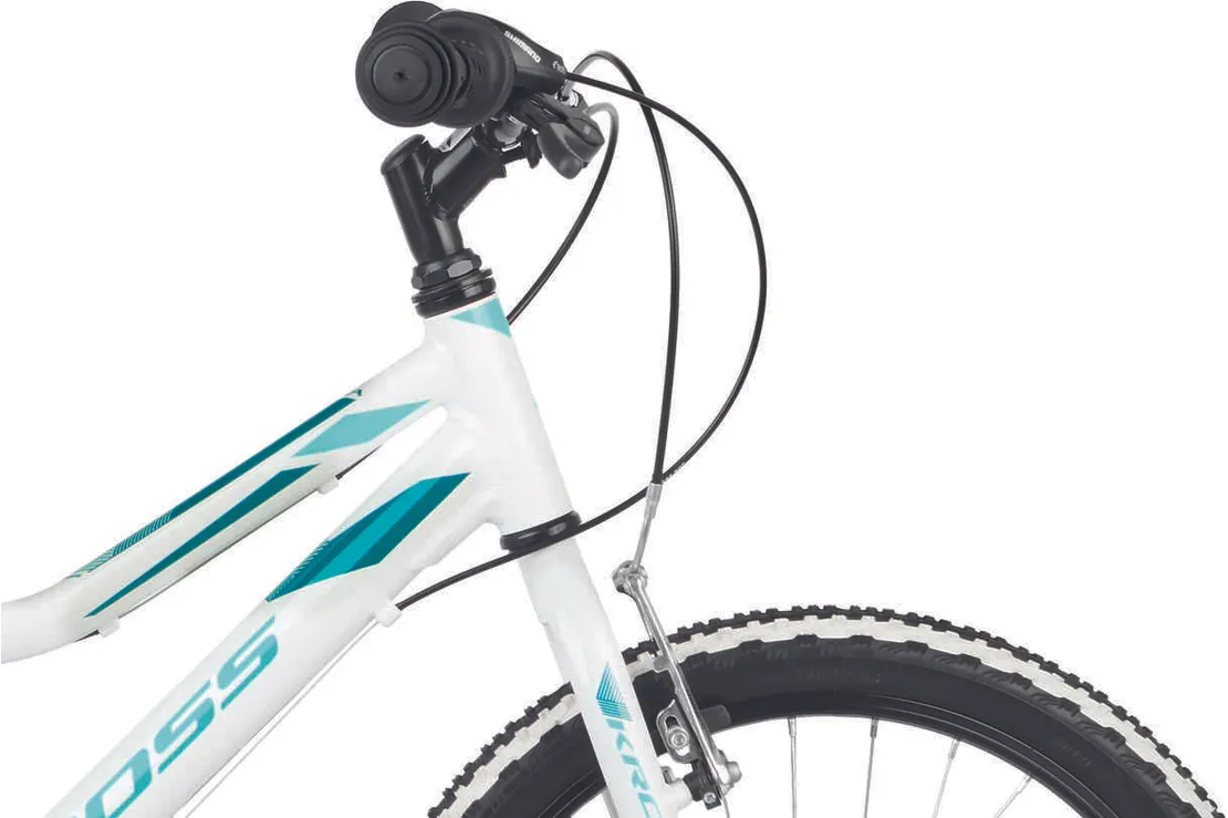 Ställ en fråga om Kross Lea Mini 1.0 20" 6-växlad vit/turkosDen populära juniormodellen Kross Lea Mini 1.0 är en prisvärd 20-tummare som trivs när det går undan och som inte backar för nya utmaningar. Chassit består av en tålig aluminiumram av hög kvalitet och dessutom låg vikt. En populär modell som passar perfekt för juniorer som gärna hänger på föräldrarna i spåret.