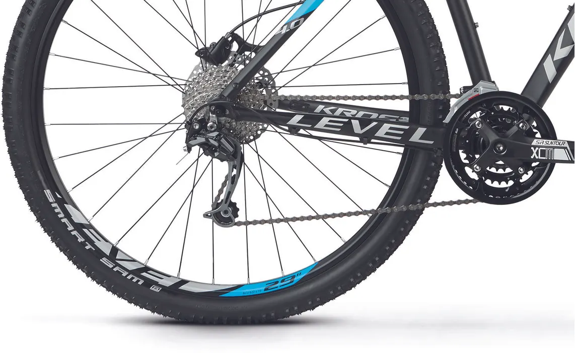 Ställ en fråga om Kross Level 4.0 29" mattsvart/blå/silverStorfavoriten Kross Level 4.0 29" är en mountainbike för dig som vill kunna cykla snabbt, både på grusvägarna och i skogen, och som aldrig tvekar på en lite mer teknisk runda. Det här är en pålitlig MTB som är utrustad med mycket av det som normalt sett ingår på lite vassare modeller. Visst, det är väl kanske inte direkt proffsklass men det handlar om pålitliga komponenter som är mer än tillräckliga för både lättare motionsturer och din daglig pendling.