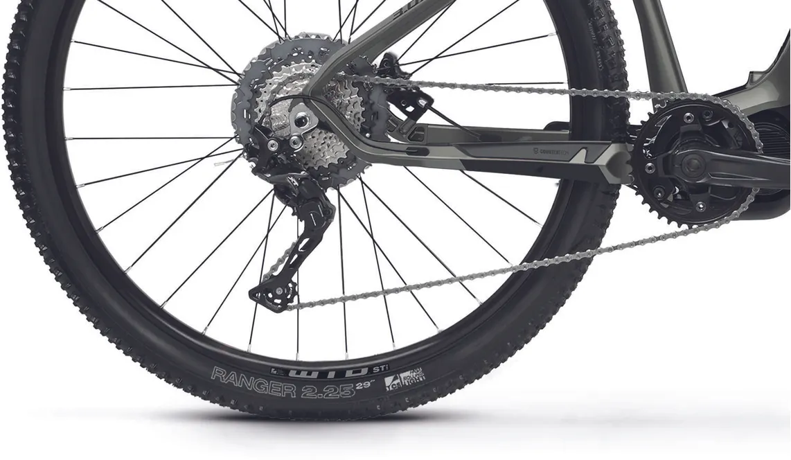 Övriga drivlinan består av ett extremt beprövat 11-växlat system från kvalitetssäkra Shimano (XT) med brett register och pålitlig funktion som hanteras via ett lättmanövrerat reglage som ger dig alla möjligheter att smidigt skifta mellan alla växlarna utan att det känns ansträngt. Motor och växel samarbetar i nästan sömlös harmoni med effektiv drivning direkt på vevaxeln och allt sker dessutom så där underbart tyst. Lägg därtill en tydlig display som i realtid visar det mesta du behöver veta och ger dig full kontroll.