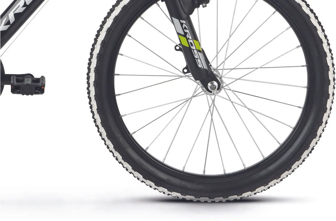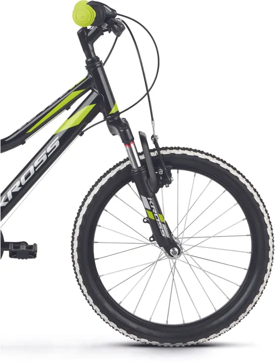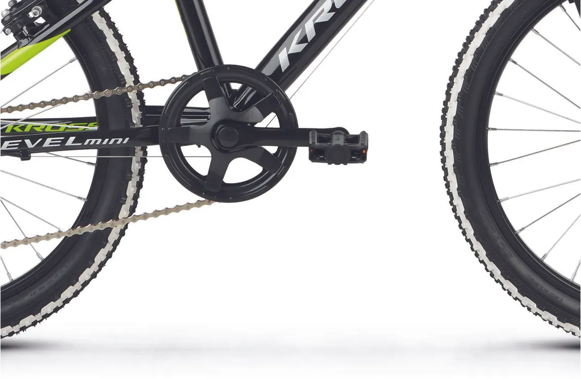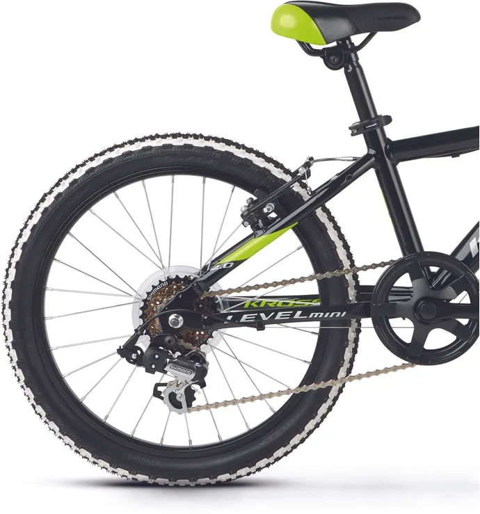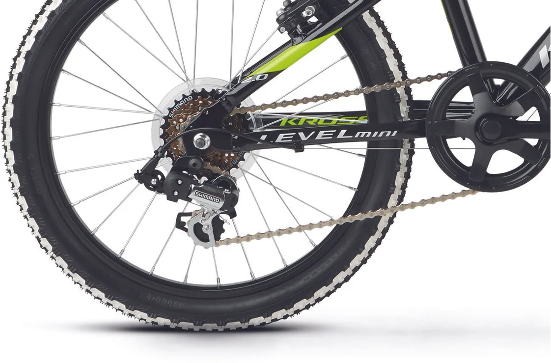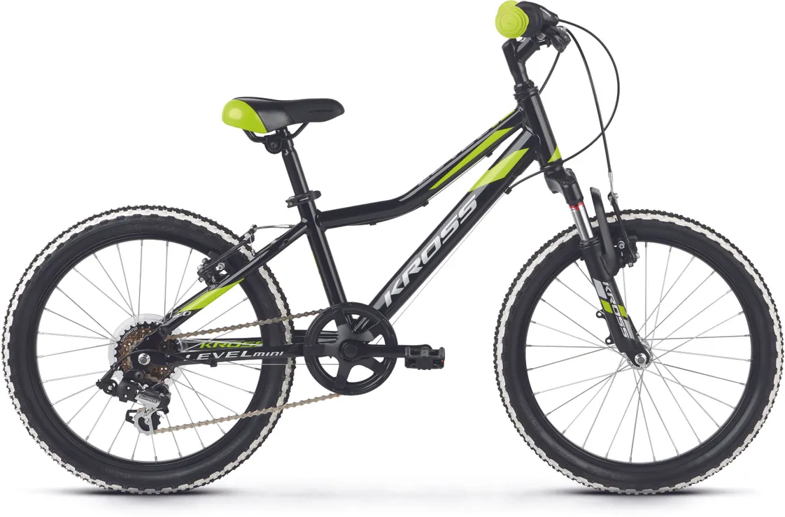 Ställ en fråga om Kross Level Mini 2.0 20" 6-växlad svart/lime/silverDen populära juniormodellen Kross Level Mini 2.0 är en prisvärd 20-tummare som trivs när det går undan och som inte backar för nya utmaningar. Chassit består av en tålig aluminiumram av hög kvalitet och dessutom låg vikt. En populär modell med dämpad framgaffel som är perfekt för juniorer som gärna hänger på större cyklister ute i spåren.