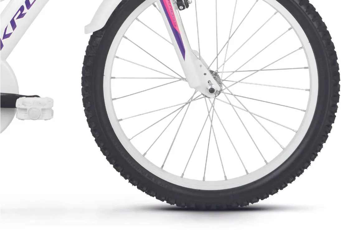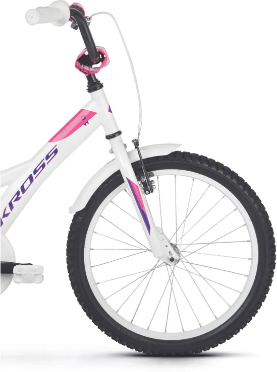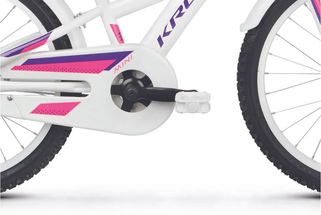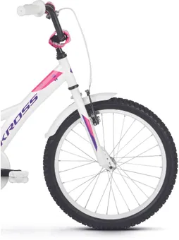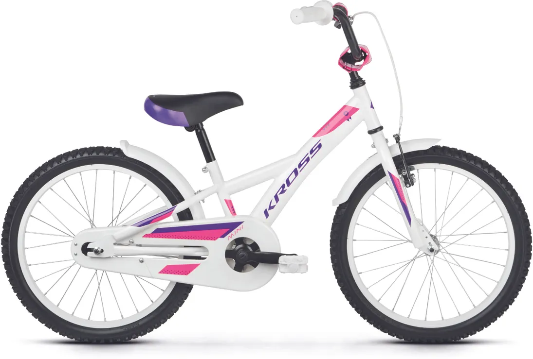 Ställ en fråga om Kross Mini 5.0 20" oväxlad vit/violett/rosaJuniormodellen Kross Mini 5.0 är en tuff 20-tummare som gillar när det händer grejer och som aldrig backar för nya utmaningar. Helt perfekt för lite mindre juniorer som vill kunna utvecklas och vägrar låta materialet sätta gränserna. En robust och tålig juniormodell som passar perfekt för blivande fartfantomer med äventyrliga gener.