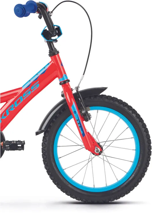 Ställ en fråga om Kross Racer 3.0 16" oväxlad röd/blåJuniormodellen Kross Racer 3.0 är en tuff 16-tummare som aldrig backar för nya utmaningar. Helt perfekt för mindre juniorer som vill kunna utvecklas och vägrar låta materialet sätta gränserna. En robust och välutrustad modell med praktiska stödhjul (som givetvis kan monteras bort) som passar perfekt för blivande fartfantomer som älskar när det händer prylar.