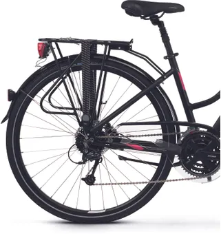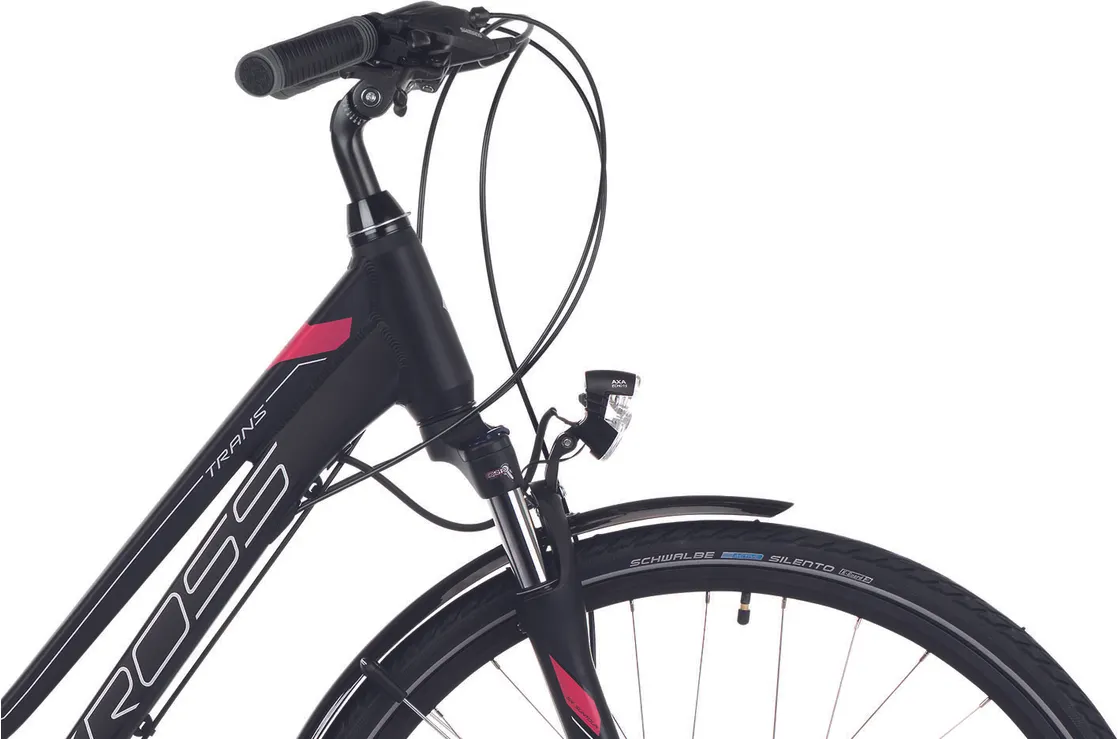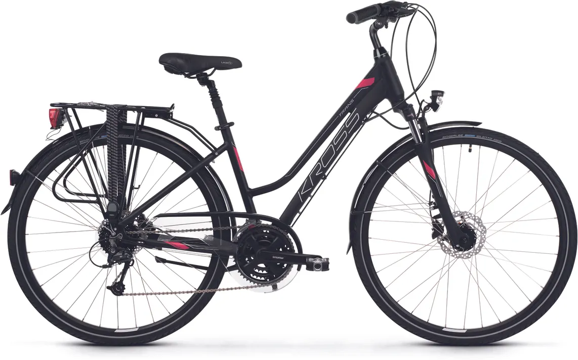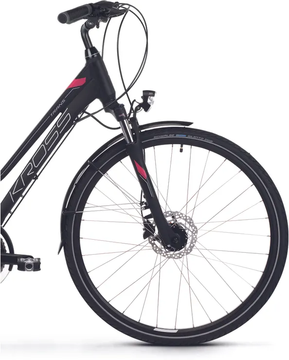 Ställ en fråga om Kross Trans 5.0 dam mattsvart/hallonrödPrisvärda storsäljaren Kross Trans 5.0 är en fullt utrustade hybridcykel som trivs precis lika bra på ute grusvägarna som på asfalten. Det här är en imponerande funktionell allroundhoj med brett register som är utrustad med mycket av det som normalt sett ingår på betydligt dyrare modeller.