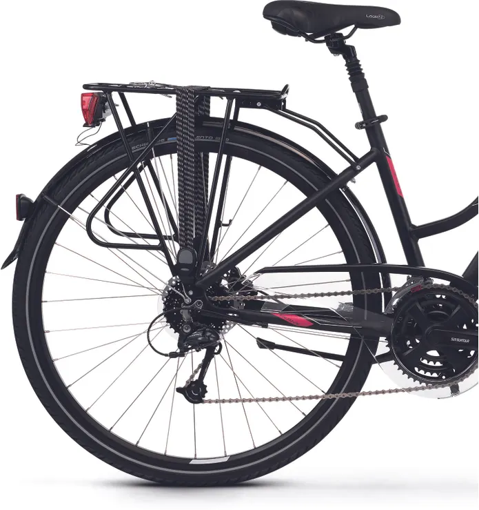 Stommen utgörs av en robust aluminiumram med komfortabel körställning som levererar bra uppsikt över omgivningen och som ser till att du alltid kan dig bekväm, oavsett om det handlar om att plöja fram över trottoarkanter i betongdjungeln eller att glida fram på grusvägarna ute i det fria. Tack vare dess smart ställbara styrstam kan du dessutom reglera din position i sadeln.