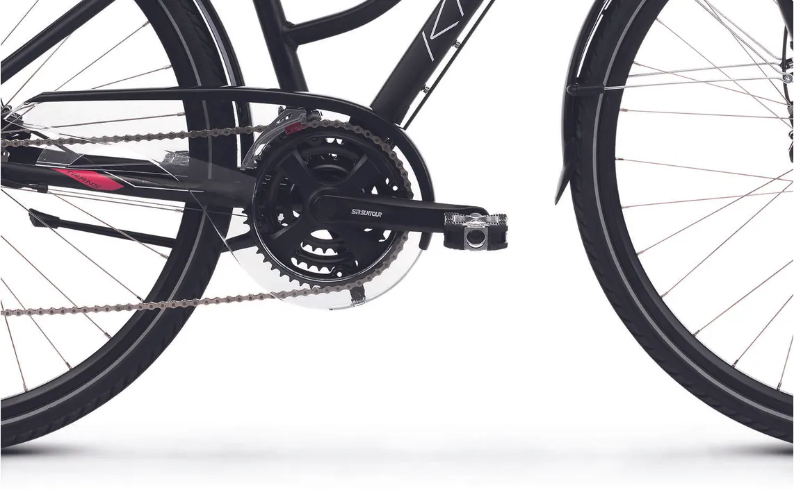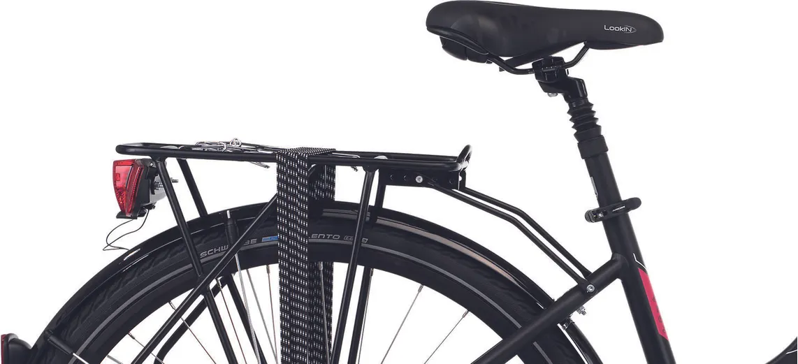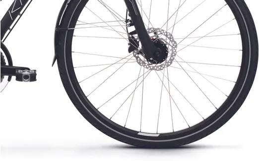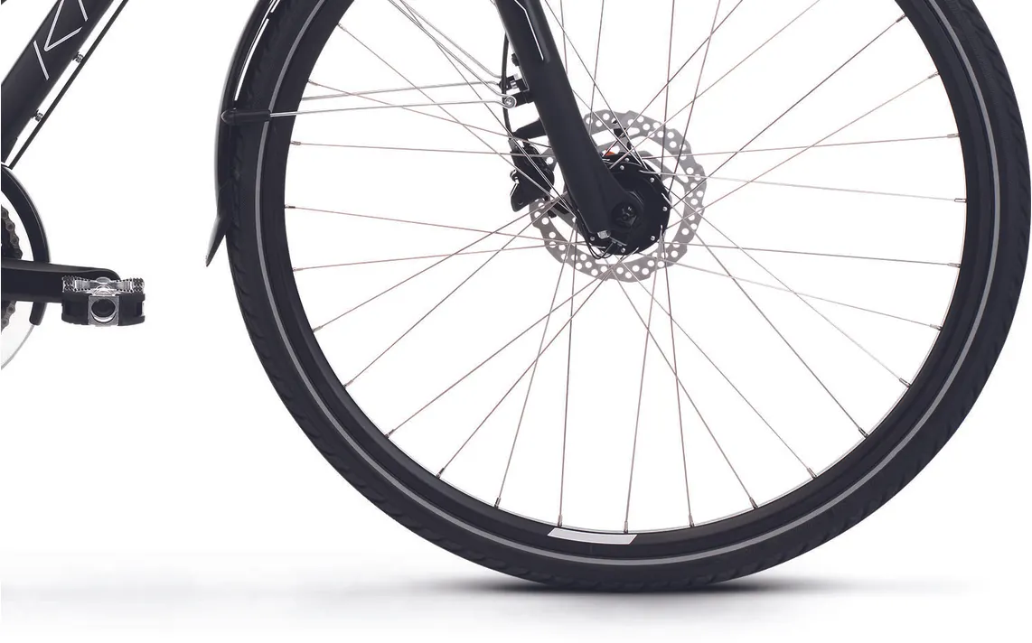 En dämpade framgaffel från Suntour (NEX) med 63 mm slaglängd samt en dämpad sadelstolpe kombinerat med robusta hjul med lite bredare däck (42 mm) ser till att du tar dig fram med full bekvämlighet även där underlaget sett sina bästa dagar, vilket bidrar till en tryggare upplevelse i sadeln. Den är dessutom redan från start utrustad med både skärmar, pakethållare, belysning och stöd, vilket ju är praktiska kompisar i vårt skandinaviska klimat med både ur och skur.