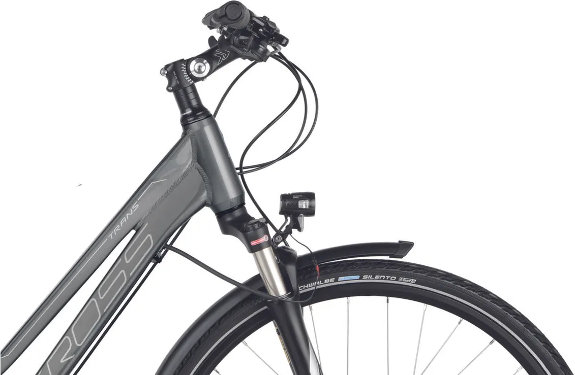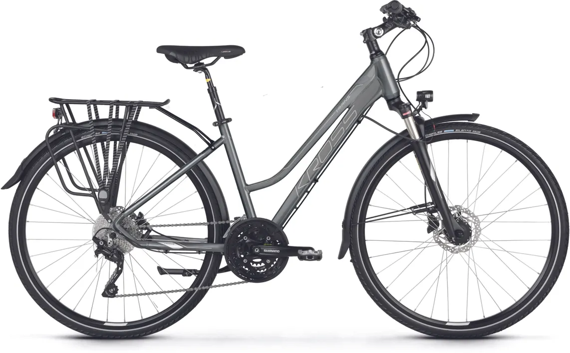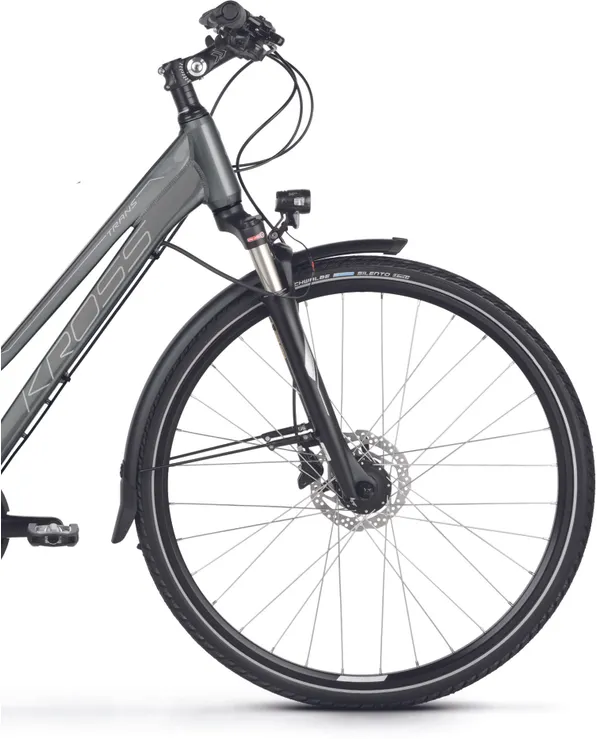 Ställ en fråga om Kross Trans 9.0 dam grafitgrå/silverDen imponerande Kross Trans 9.0 är en fullt utrustade hybridcykel som trivs precis lika bra på ute grusvägarna som på asfalten. Det här är en imponerande kompetent allroundhoj som är utrustad med mycket av det som normalt sett ingår på betydligt dyrare modeller. Visst, det är väl kanske inte ren proffsklass men det är genomgående beprövade kvalitetskomponenter rakt igenom hel specifikationen.