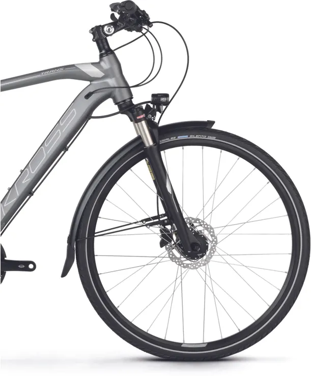 Ställ en fråga om Kross Trans 9.0 mattgrå/silverDen imponerande Kross Trans 9.0 är en fullt utrustade hybridcykel som trivs precis lika bra på ute grusvägarna som på asfalten. Det här är en imponerande kompetent allroundhoj som är utrustad med mycket av det som normalt sett ingår på betydligt dyrare modeller. Visst, det är väl kanske inte ren proffsklass men det är genomgående beprövade kvalitetskomponenter rakt igenom hel specifikationen.