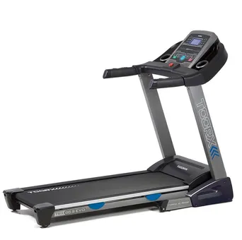 Toorx TRX-65 S EVO är ett gediget löpband med trådlös mätning för hjärtfrekvens. Detta kvalitativa löpband har en motor med 3 års garanti och ram med livstidsgaranti. Lutningsgraden är 14 % i 15 olika nivåer som du justerar enkelt och smidig på elektronisk väg. Löpytan har hela 14 luftkuddar som gör att de värsta stötarna absorberas och ger dig en skonsam löpning för leder och knän. Löpbandet är utrustat med en motor som kan nå hastigheter på 20 k/h.