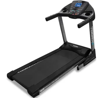 Ställ en fråga om Löpband Toorx TRX-Grand Cruiser HrcToorx TRX-GRAND CRUISER är ett kvalitativt löpband med trådlös mätning för hjärtfrekvens där pulsbälte ingår i leveransen. Löpbandet har en DC-motor med 5 års garanti och livstidsgaranti på ramen. Lutningsgraden är 15 % i 15 olika nivåer som du justerar enkelt och smidig på elektronisk väg. Löpytan har 6 stycken luftkuddar som gör att de värsta stötarna absorberas och ger dig en skonsam löpning för leder och knän.