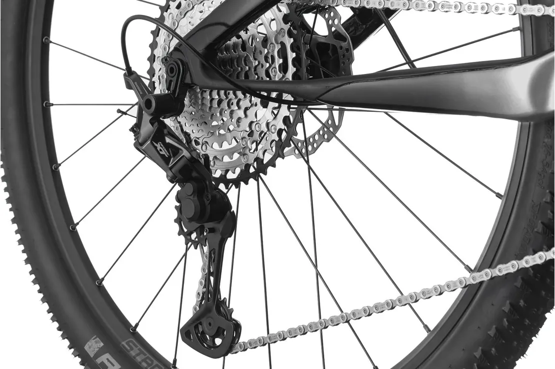 Under motorhuven sitter en pålitlig 1x-drivlina med 12 slagkraftiga växlar från Shimano (XT/SLX) och den har en utväxling som levererar mer än tillräckliga fartresurser för att även riktigt ambitiösa cyklister ska kunna briljera i alla former av tempon. När det går undan så ökar kraven på bromsförmågan och just därför är den utrustad med kraftfulla hydrauliska skivbromsar från Shimano (Deore), vilket både sänker underhållsbehovet och ser till att du har tillgång till effektiv och pålitlig bromsförmåga året om, och dessutom oavsett om det är regnigt eller slaskigt i spåren.