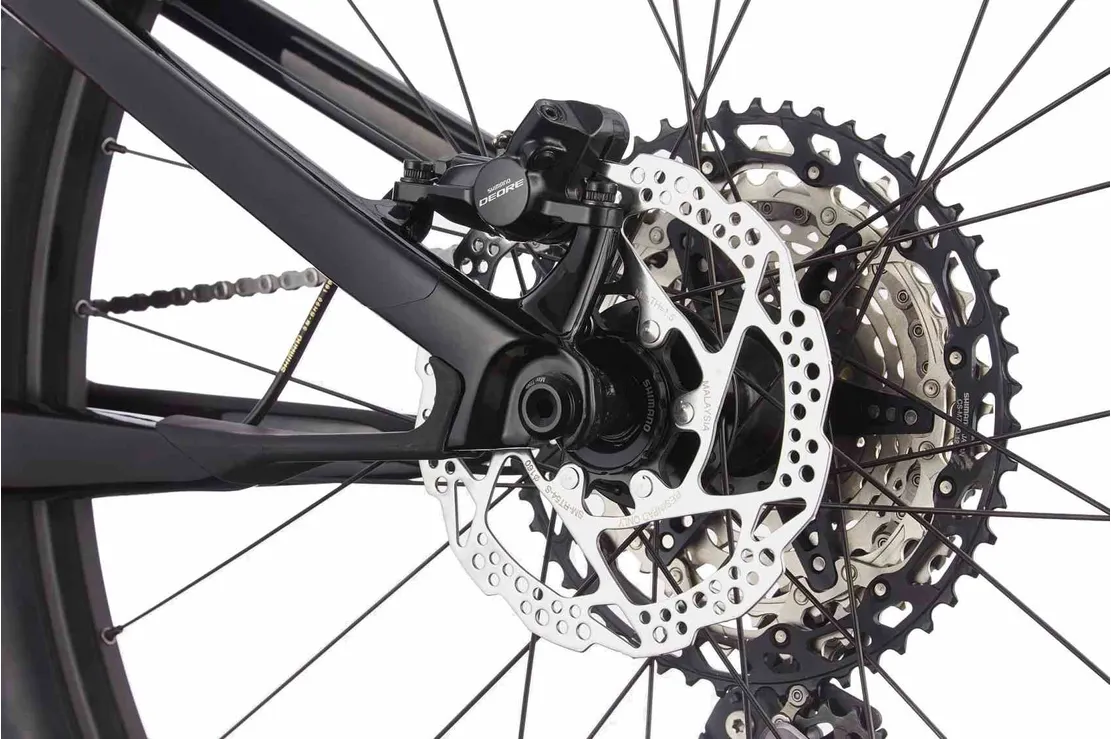 Under motorhuven sitter en pålitlig 1x-drivlina med 12 slagkraftiga växlar från Shimano (XT/SLX) och den har en utväxling som levererar mer än tillräckliga fartresurser för att även riktigt ambitiösa cyklister ska kunna briljera i alla former av tempon. När det går undan så ökar kraven på bromsförmågan och just därför är den utrustad med kraftfulla hydrauliska skivbromsar från Shimano (Deore), vilket både sänker underhållsbehovet och ser till att du har tillgång till effektiv och pålitlig bromsförmåga året om, och dessutom oavsett om det är regnigt eller slaskigt i spåren.