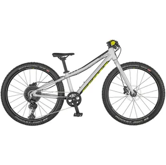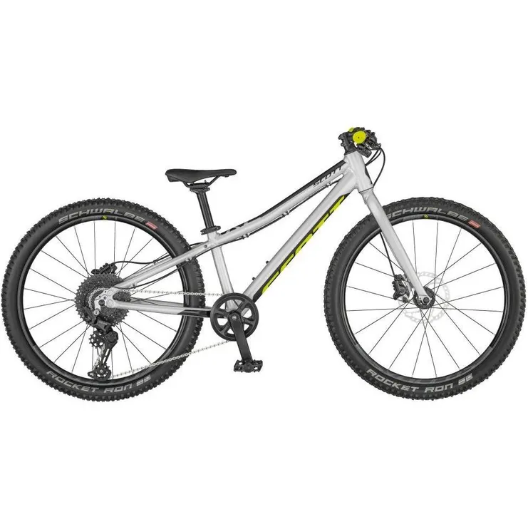 Tävlingsklara Scott Scale RC 400 är en stenhård juniorcykel med design som är inspirerad av Scott´s racehojar för vuxna. Precis som sina lite större syskon är även det här en lätt mountainbike med en högkvalitativ aluminiumram som fokuserar på låg vikt, hög framkomlighet och maximal hastighet. Modellen har genomgående betydligt finare komponenter än vad de flesta mindre cyklister är vana vid, och det vittnar ju om att den här cykeln är skapad för blivande fartfantomer som vill kunna cykla galet fort!