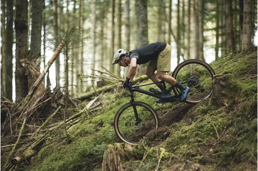 Utan att bli det minsta stöddig lutar sig denna rappa skogsmaskin självsäkert mot en främre triangel i högkvalitativ kolfiber (HMF) i kombination med ett singlepivot länkage med swingarm i aluminium (6011) som väger in på låga 2.650 gram inklusive dämparen. Den unika konstruktionen med en kraftfull undre stomme (stiffness zone) där fokus ligger på styrka och vridstyvhet i kombination med en övre stomme (lightweight zone) där fokus ligger på att minimera vikten utan att riskera stommens strukturell styrka har redan visat sig vara ett vägvinnande koncept. Och det kanske inte är så konstigt när den här helt nya stommen har hämtat inspiration från en föregångare med en geometri som plockat hem flera VM- och OS-medaljer än någon annan XC-cykel i världshistorien.