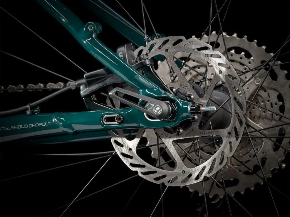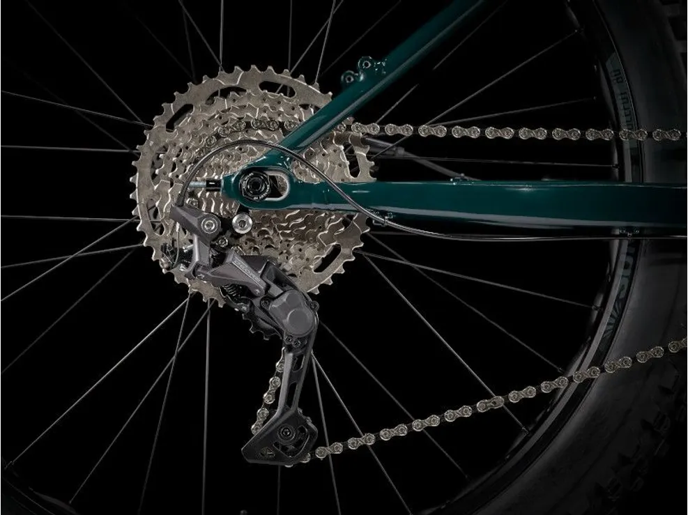 Fälgarna från SUNRingle (Mulefüt 80 SL) är anslutna till robusta nav i aluminium från Bontrager. Framnavet har genomgående axel (150 x 15 mm) och givetvis kapslat lager. Baknavet 108T Rapid Drive (197 x 12 mm) har 108 ingreppspunkter, vilket ger dig näst intill omedelbar acceleration snarare än en seg fördröjning när du trampar till på pedalerna. Du får både en jämn gång och en mer direkt kraftöverföring när du kastar dig ur kurvorna och satsar för fullt genom de stökigare partierna. Och den extra pedalspärren ger ökad kontroll, vilket kan göra hela skillnaden vid lite knepiga klättringar.