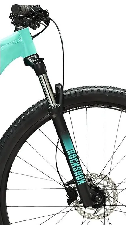 Framtill sitter en dämpad gaffel från RockShox (Judy) med ställbar spiralfjädring och 100 mm slaglängd som dessutom är utrustad med Lockout. Det innebär att du kan spärra gaffeln och därmed åstadkomma högre pedaleffektivitet, vilket är perfekt på släta avsnitt där effektiviteten kanske är viktigare än stötdämpningen.