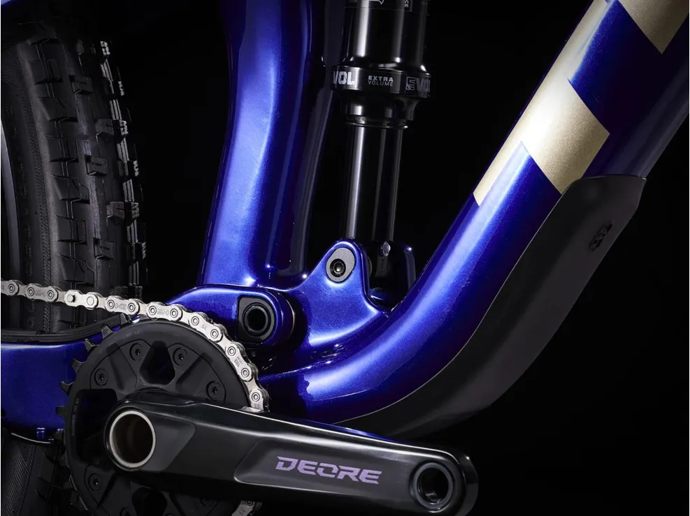 Framtill sitter en vass luftgaffel från Fox (Rhythm 34 Float) med en slaglängd på 120 mm och även baktill hittar du en vass 3-lägesdämpare från Fox (Performance Float DPS) med en slaglängd på 120 mm. Dämparna kan optimeras efter din vikt och körstil och är även utrustad med lockout, vilket innebär att du kan spärra dämparna. Denna låsning av dämparna ger dig ökad trampeffektivitet, vilket är perfekt när det är dags att spurta eller klättra effektivt. Lägg därtill en praktiskt ställbar sadelstolpe som ser till att du blixtsnabbt kan sänka/höja sadeln i farten och som du dessutom styr via ett lätthanterligt reglage. Med Trek´s unika Active Braking Pivot har konstruktörerna lyckats styra hur dämpningen ska reagera på de krafter som skapas vid acceleration och inbromsning, dessutom helt oberoende av varandra. I praktiken kan du nyttja dämparen fullt ut även vid inbromsning och du får därmed större kontroll när du behöver det som mest.