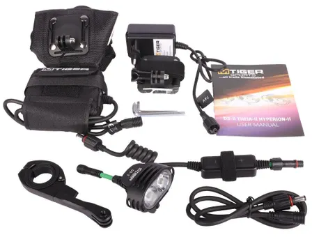 Ställ en fråga om Pannlampa M-Tiger DS II 1800L + Styrfäste & Hjälmfäste för Cykel