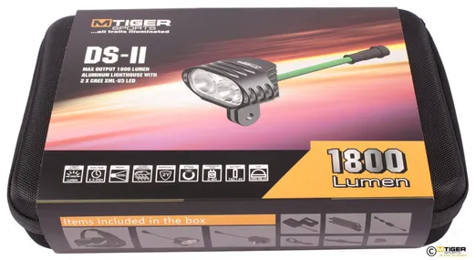 Ställ en fråga om Pannlampa M-Tiger DS II 1800L + Styrfäste & Hjälmfäste för CykelI DS-paketet ingår: