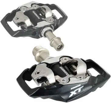 Shimano XT MTB-pedal. Öppen design för bra lerrensning. Extra stabil kontakt med pedalkloss. Justerbar spänning. Tätad cartridgeaxel. Pedalkloss medföljer. Vikt: 345 gr.