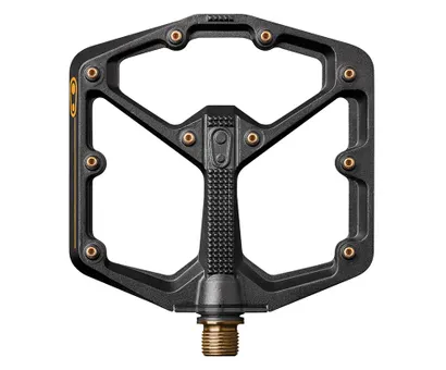 Prisbelönta Crankbrothers Stamp 11 Largeär en konkav plattformspedal i högkvalitativ Auminium (6061-T6) och Titanium vars primära funktion är att optimera känslan mellan sko och cykel. Den tillverkas i två olika storlekar (Small och Large) för att passa just din fot och därmed se till att du kan optimera kraftöverföringen. Tack vare dess slimmade design och högklassiga material har man lyckats hålla nere vikten på pedalen utan någon negativ inverkan på dess funktion. Den konkava plattformen har dessutom 10 reglerbara stift på varje sida, vilket håller foten säkert på plats och du får den kontroll du behöver för cykelspåren.
