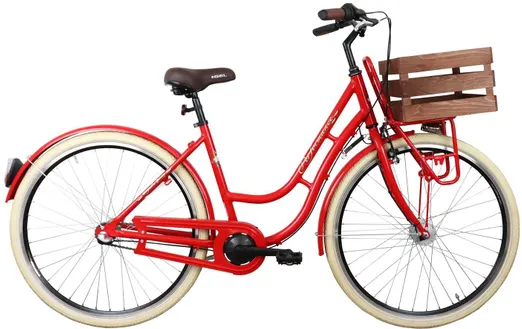Den här snygga 3-växlade damcykeln är väl anpassad för vårt skandinaviska klimat och modellen är redan från start generöst välutrustad med bland annat både skärmar, pakethållare, kedjeskydd, stilig träkorg, belysning som drivs an dynamo.