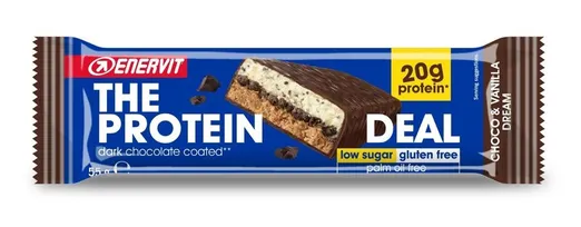 Enervit Protein Deal Bar passar även utmärkt som ett tillfredställande mellanmål tack vare sin goda smak, höga proteinhalt och låga mängd socker.
