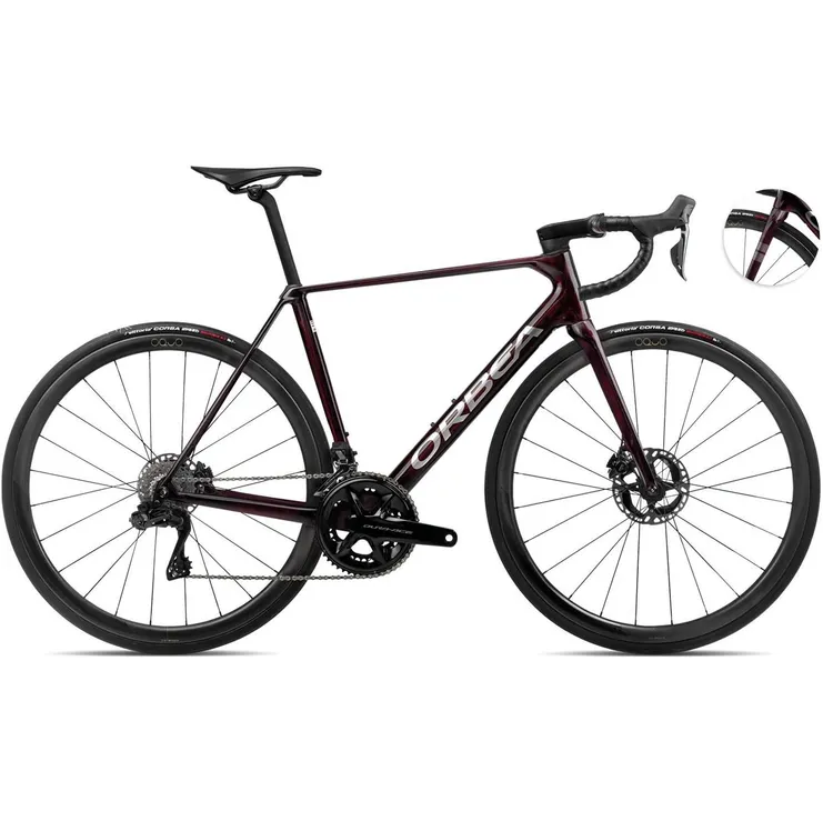 Ställ en fråga om Racer Orbea Orca M10iltd Pwr Wine Red-Titanium GlossTävlingsklar landsvägsracer med fin balans mellan vikt, styvhet och vridstyvhet