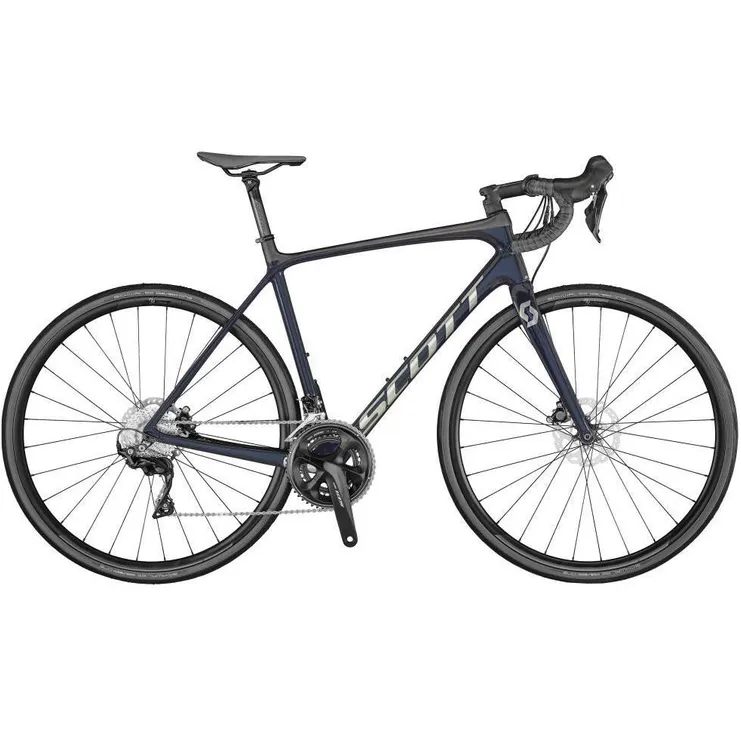 Ställ en fråga om Racercykel Scott Addict 20 Disc blåLätt landsvägscykel i kolfiber med fokus på episkt långa dagar i sadeln