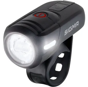 Ställ en fråga om Framlampa Sigma Aura 45 USBDen smarta framlampan Sigma Aura 45 USB är potent framlampa med praktiskt uppladdningsbart batteri. En liten och smidig främre belysning med både byggkvalitet och känsla i toppklass. Dess kraftfulla Osram LED levererar upp till 45 lux och har ett sken som skapar en tydligt ljusbild ända upp till 55 meter framför cykeln, vilket räcker mer än väl för de allra flesta cyklister.
