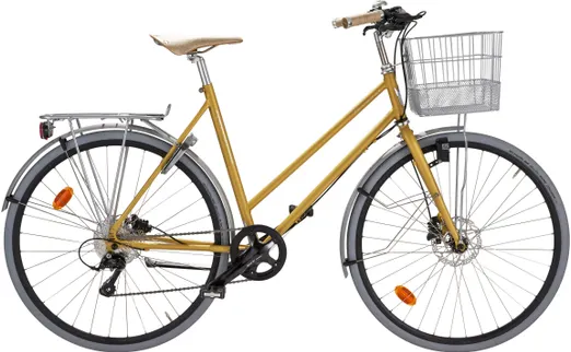 Ställ en fråga om Skeppshult dam Favorit Sport 9-växlad matt guldmyntI Skeppshult Favorit Sport har man tagit det bästa av två världar - känslan från sjuttiotalet, men cykelupplevelsen från idag. Det innebär en klassisk look med rena linjer, ett gott hantverk och mycket cykelkänsla - men med hydrauliska Shimano M445-skivbromsar, fina Schwalbe-däck, 9 Shimano-växlar och smart LED/diod-belysning.