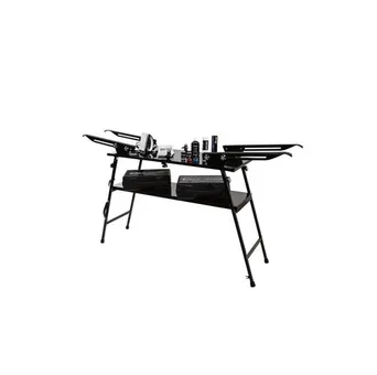 Skistart Vallabord Med Dubbla Profiler är ett stabilt, hopfällbart vallabord för två par skidor. Bordet har ett bärhandtag som gör det enkelt att flytta och en avlastningshylla undertill.