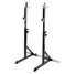 Mycket kraftig skivstångsställning för såväl knäböj som bänkpress. Handtagen gör att du även kan använda den som dipsställning.