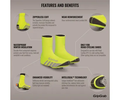 GripGrab RaceThermo har smarta IntelliSeal, en genial teknik som ökar slitstyrka och resistens mot väta. Dessutom är dom kompatibel med nästan alla typer av pedalsystem tack vare en öppen design.
