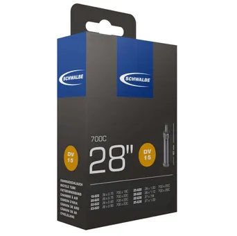 Ställ en fråga om Cykelslang Schwalbe DV15 STANDARD 18/28-622/630 Cykelventil 40 mmMiljövänligt producerad cykelslang från tyska Schwalbe