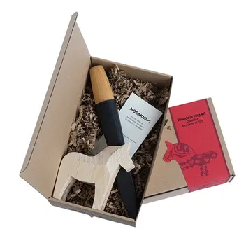 Praktiskt täljkit med en klassisk slöjdkniv och ett dalahästämne.