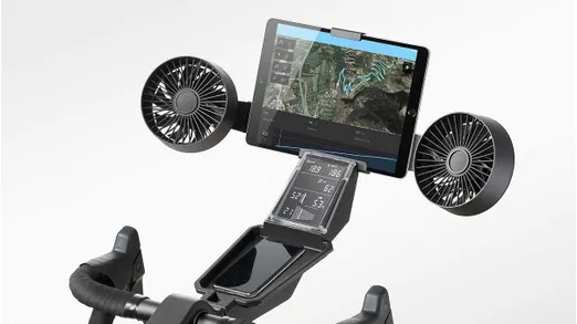 Du kan välja att använda trainern i fristående läge. När den inte är ansluten simulerar den en plan väg. Ju snabbare du kör, desto högre motstånd. Neo Bike Smart har en 4,5-tumsskärm och USB-laddare så att du kan slå på dina enheter. Inbyggda interaktiva fläktar styrs automatiskt av din kraft och