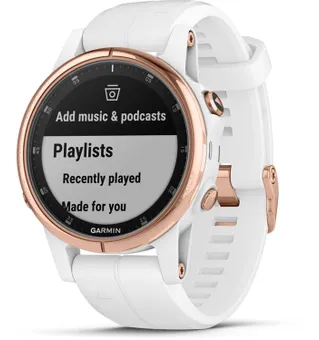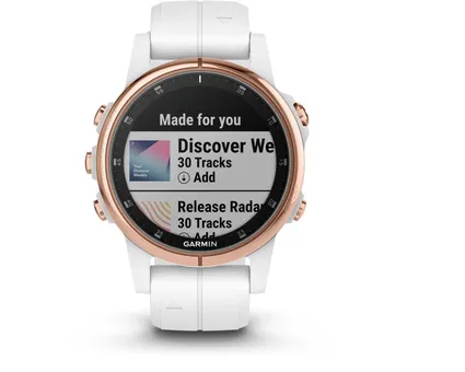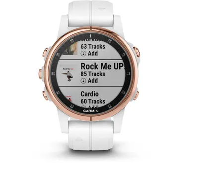 Du tröttnar aldrig med en träningsspellista som du kan ändra när som helst. F?nix 5s Plus är kompatibel med några av dina favoritstreamingtjänster – och fler läggs till hela tiden. Om du har ett premiummedlemskap för någon av de kompatibla tjänsterna kan du hämta varje spår från deras enorma bibliotek för offlinelyssning på klockan.