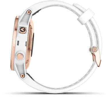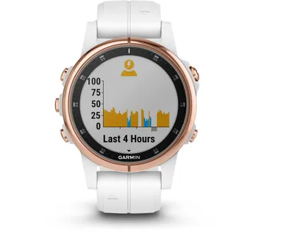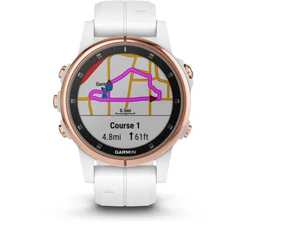 Ställ en fråga om Träningsklocka Garmin Fenix 5S Plus Sapphire roséguld/vitGarmin f?nix 5S Plus för idrottare och utomhusäventyrare är det högpresterande sättet att slå gårdagens prestation och samtidigt bära med sig både kartor och musik. En robust, tålig och förstklassig klocka med ruttdragningsbara kartor i färg och pulsmätning vid handleden som både rymmer upp till 500 låtar och är förberedda för Garmin Pay (en lösning för kontaktlös betalning).