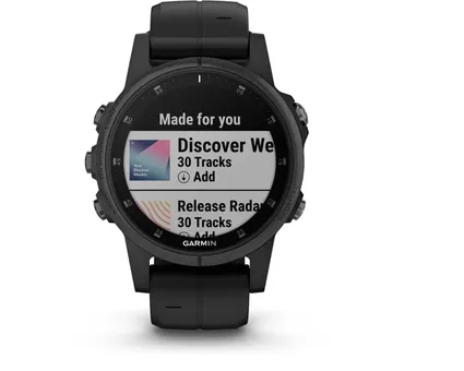 Har du en låt som får igång dig inför ett lopp eller tufft träningspass? Med fēnix 5S Plus kan du nu njuta av att lyssna utan behov av telefon var du än är, med upp till 1000 låtar som ryms direkt i klockan. Det är enkelt att föra över musik och göra en lista med alla dina favoriter, som du kan njuta av var som helst, när som helst via trådlöst anslutna Bluetooth-hörlurar (säljs separat). Du kan även synkronisera dina omsorgsfullt skapade spellistor från utvalda musikstreamingstjänster till klockan för mer reklamfri lyssning. Så lämna telefonen hemma när du ger dig ut på en löp- eller cykelrunda – musiken som håller dig igång har du med dig på din handled.