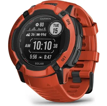 Ställ en fråga om Träningsklocka Garmin Instinct 2X Solar RedTillräckligt tuff för att hålla jämna steg med både dig och din intensiva livsstil