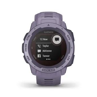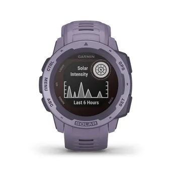Ställ en fråga om Träningsklocka Garmin Instinct Solar LjuslilaUthållig smartwatch som hjälper dig att fokusera på det du gillar mest!